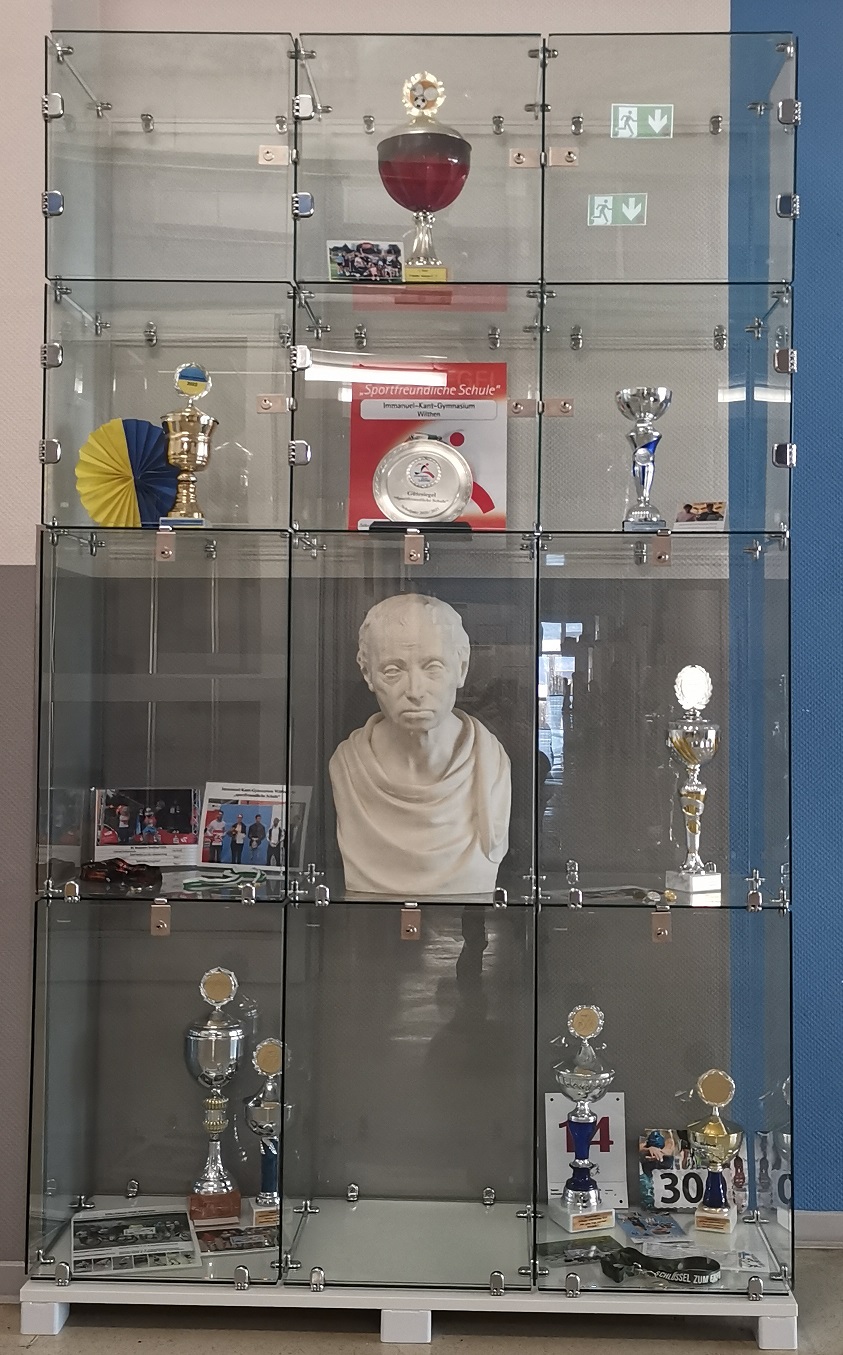 Dank unseres Kooperationspartners der Trumpf Sachsen SE in Neukirch haben wir nun auch im 2. Obergeschoss eine Vitrine, in denen sich all jene mit ihren errungenen Preisen präsentieren können, die unser Immanuel-Kant-Gymnasium mit großem Engagement in Wettkämpfen vertreten haben, ob Sport, Fremdsprachen, Informatik oder andere Kategorien.