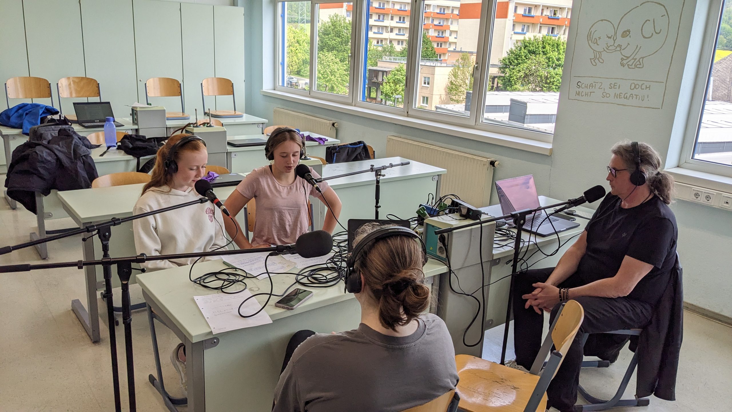 Wir fanden es sehr interessant, wie so eine Radiosendung aufgebaut ist und wie viel Arbeit auch dahinter steckt, um eine Sendung zu planen. Gleichzeitig waren wir auf inhaltlicher Ebene aber sehr überrascht und teilweise geschockt, was es für Challenges und Gefahren in den digitalen Medien gibt.