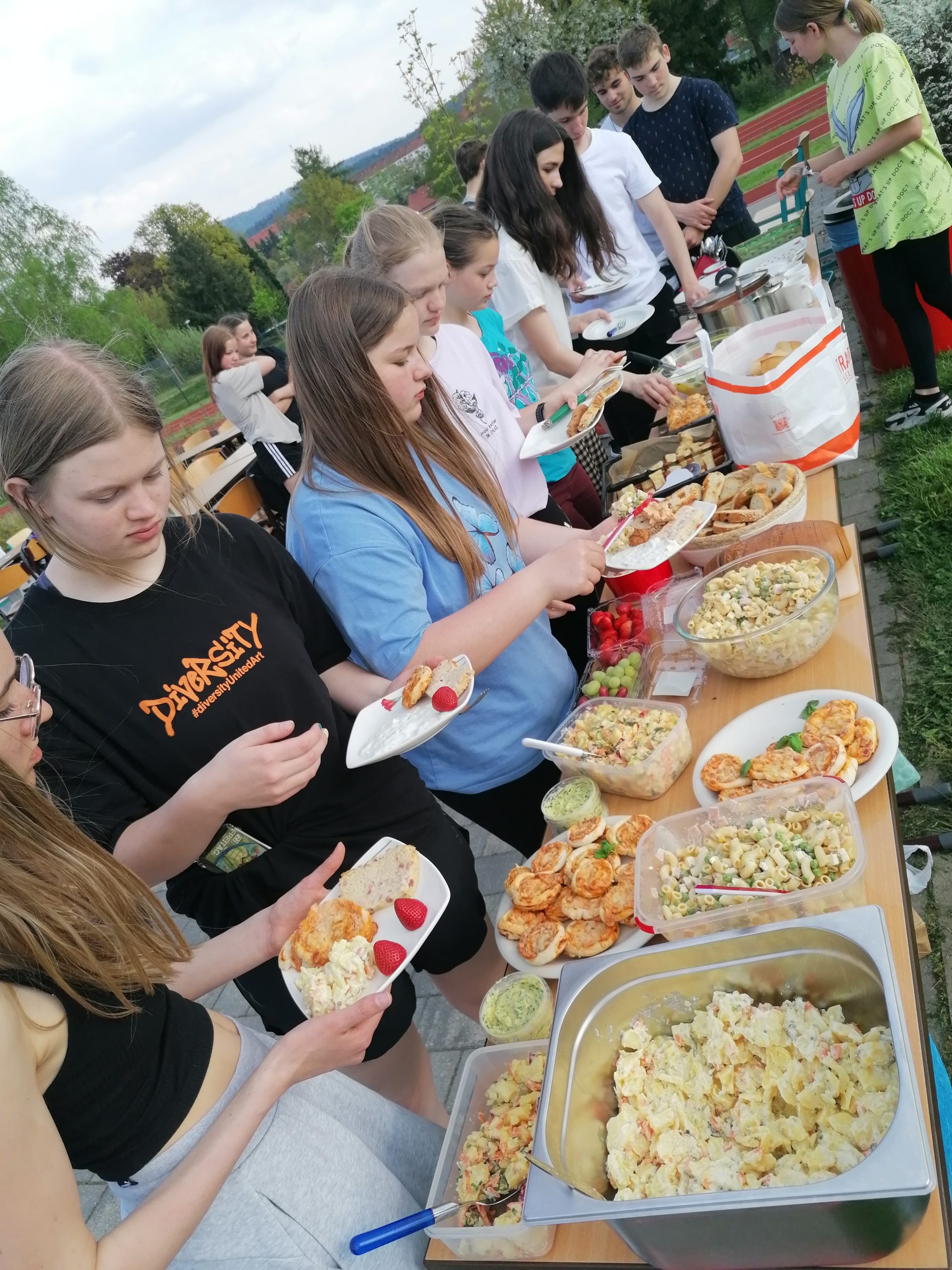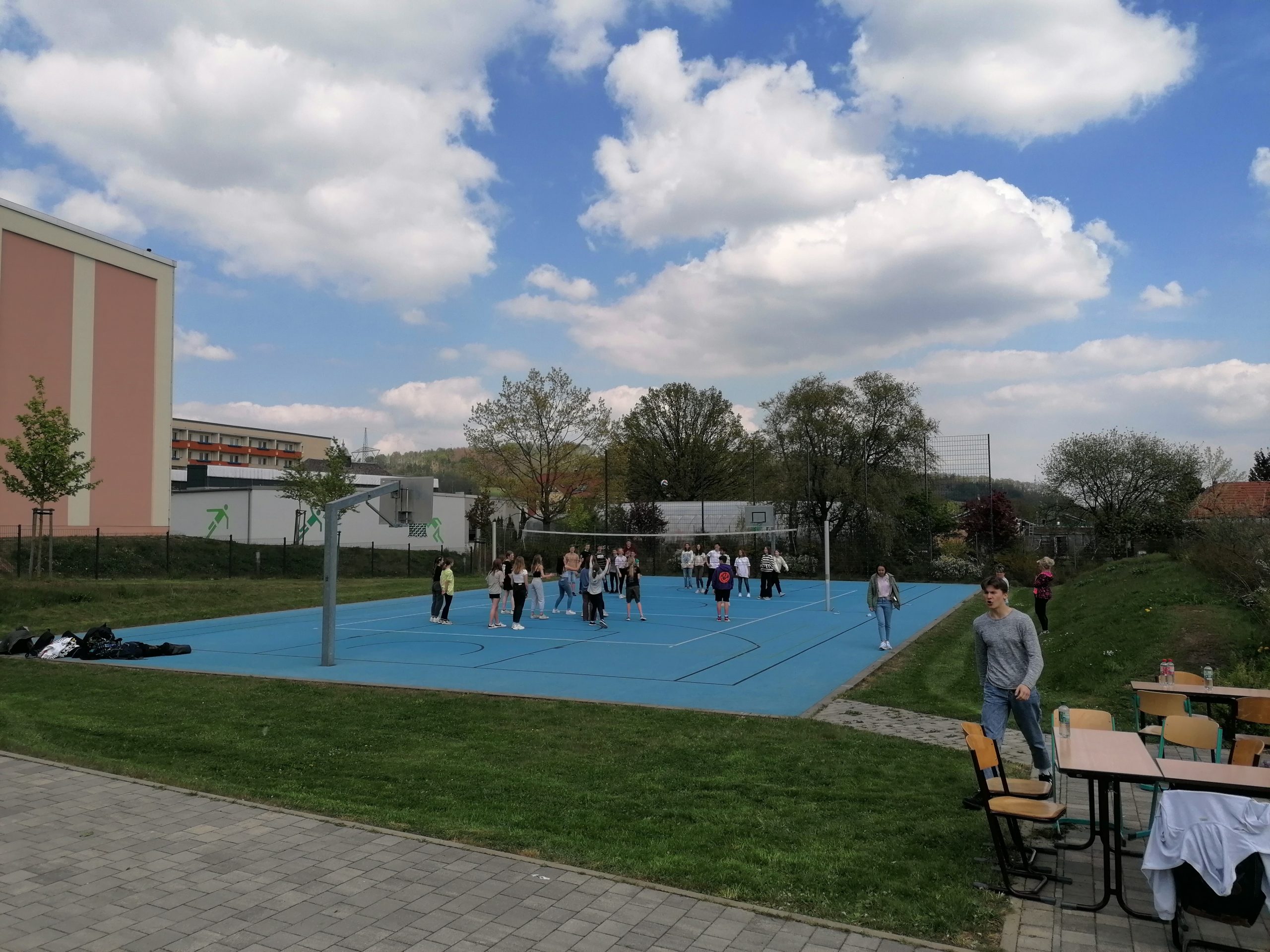 Unter diesem Motto veranstaltete die Klasse 7/3 am 6.5.2022 einen gemeinsamen Sportnachmittag mit unseren ukrainischen Schülern. Neben Spiel und Spaß stand dabei auch der integrative Faktor von Sport im Vordergrund. So hatten die Schüler die Möglichkeit, ungezwungen miteinander in Kontakt zu treten. In gemischten Teams konnten sie sich im Zwei-Felder-Ball, Volleyball und Fußball messen und beim abschließenden gemeinsamen Abendbrot gab es die Möglichkeit zum näheren Kennenlernen.