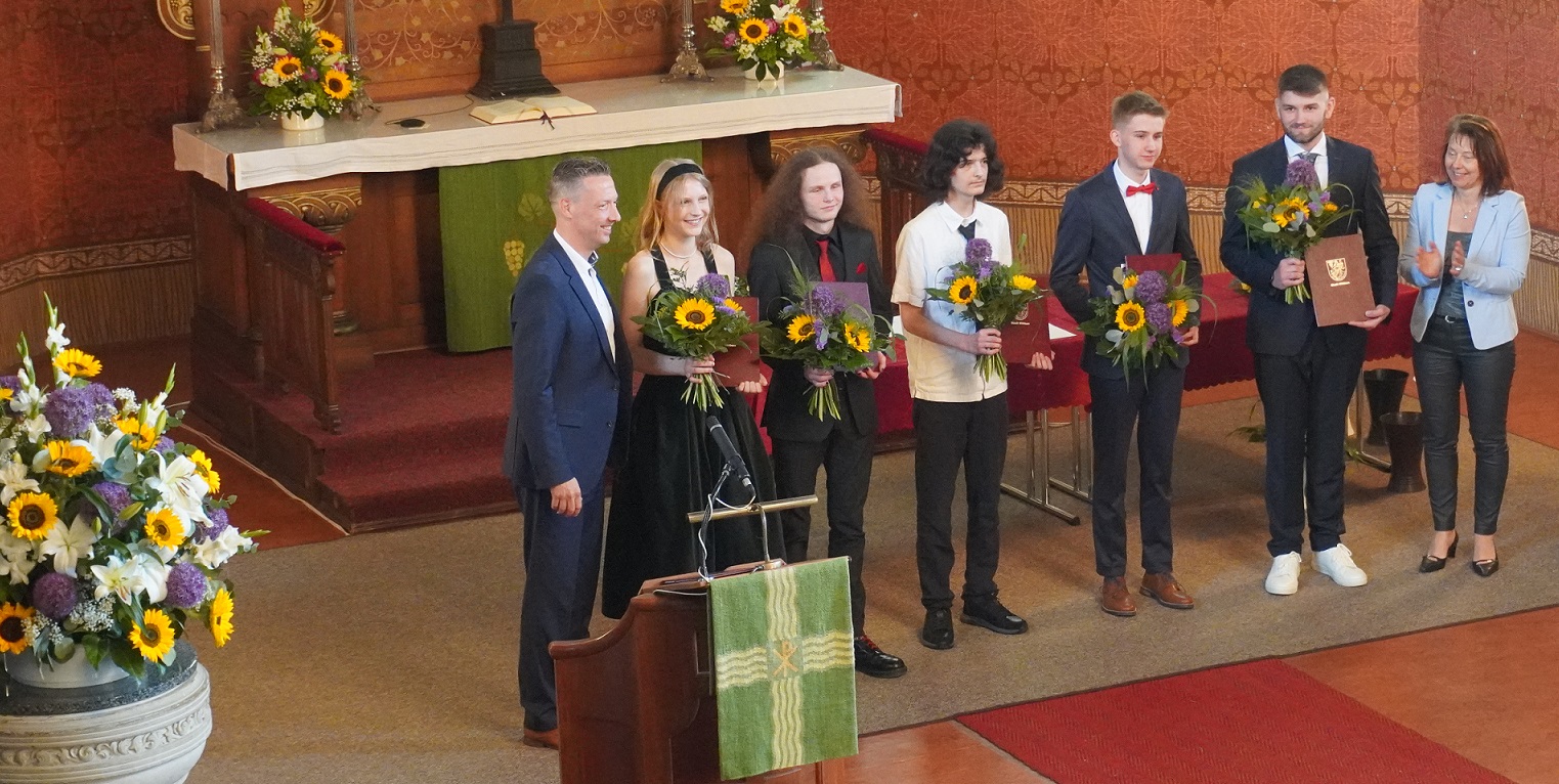 Während einer sehr feierlichen Zeremonie in der Kirche zu Wilthen, getragen von künstlerischen Darbietungen unserer Schüler, verabschiedeten sich der Bürgermeister Herr Herfort, unser Schulleiter Herr Straube, Tutoren und Laudatoren von den Abiturienten. Stellvertretend für den Jahrgang blickten Florentine Henke und William Schneider noch einmal auf ihre Schulzeit am IKG Wilthen zurück. In den Bereichen Gesamtergebnis, Naturwissenschaften, Gesellschaftswissenschaften, Sprachen und Engagement wurden die Besten geehrt.