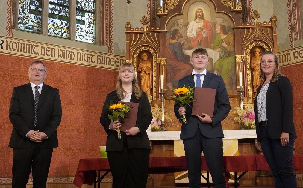 Herr Herfort, unser stellvertretender Schulleiter Herr Geier, Tutoren und Laudatoren von den Abiturienten. Stellvertretend für den Jahrgang blickten Hannah Kaltenbrunn und Augustinus Holfeld noch einmal auf ihre Schulzeit am IKG Wilthen zurück. In den Bereichen Gesamtergebnis, Gesellschaftswissenschaften, Sprachen und Engagement wurden die Besten geehrt.