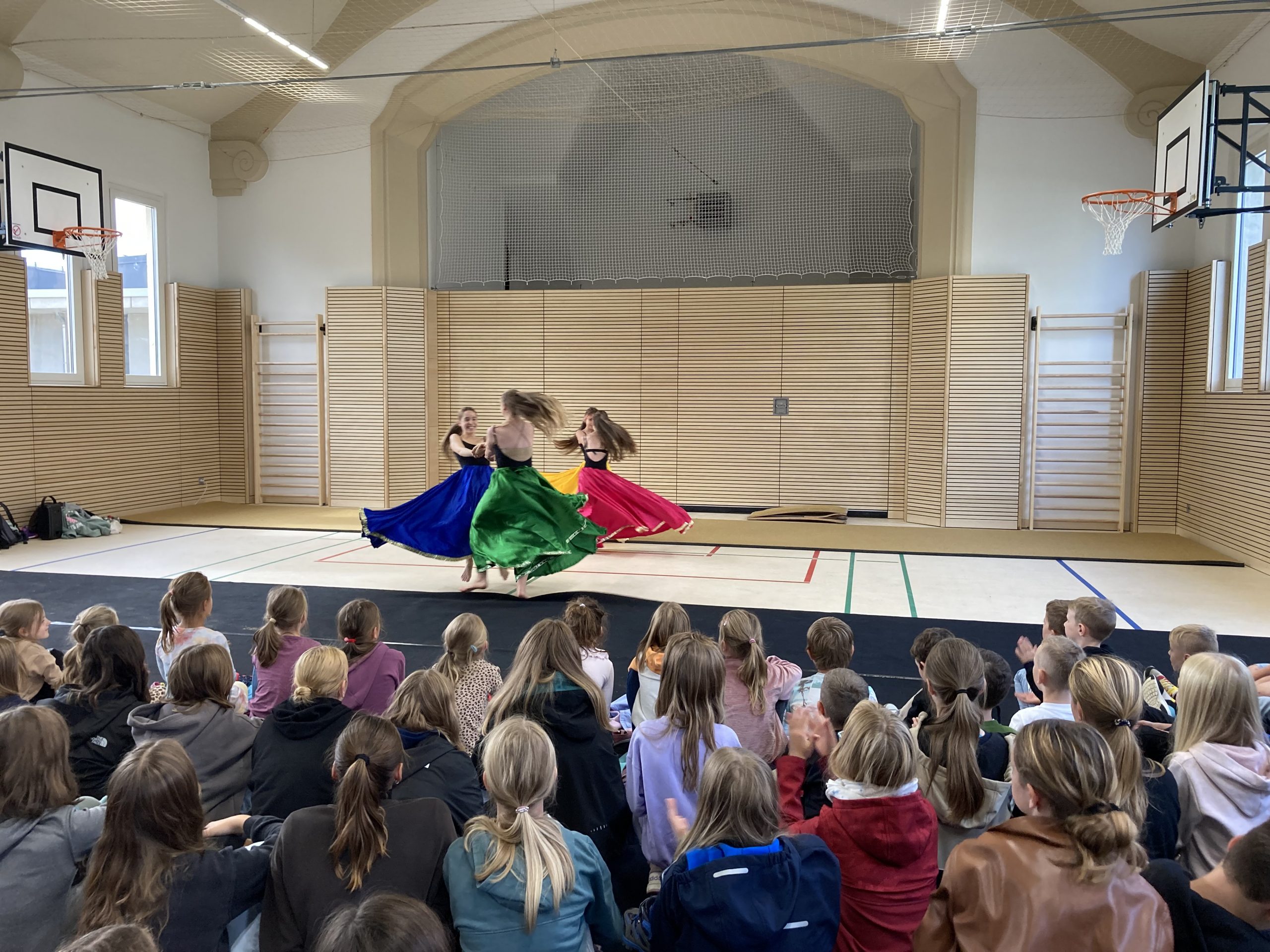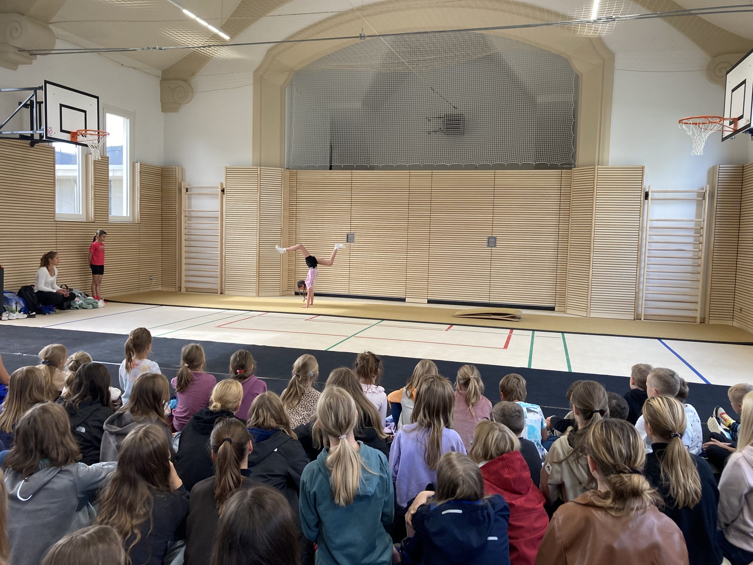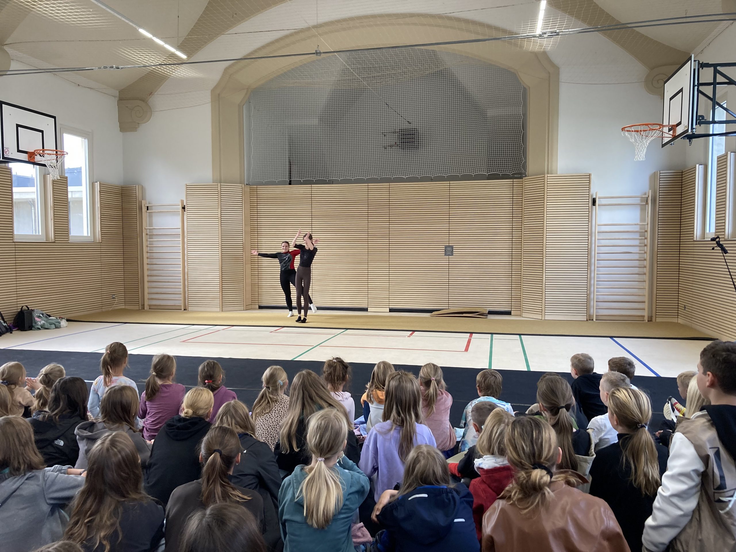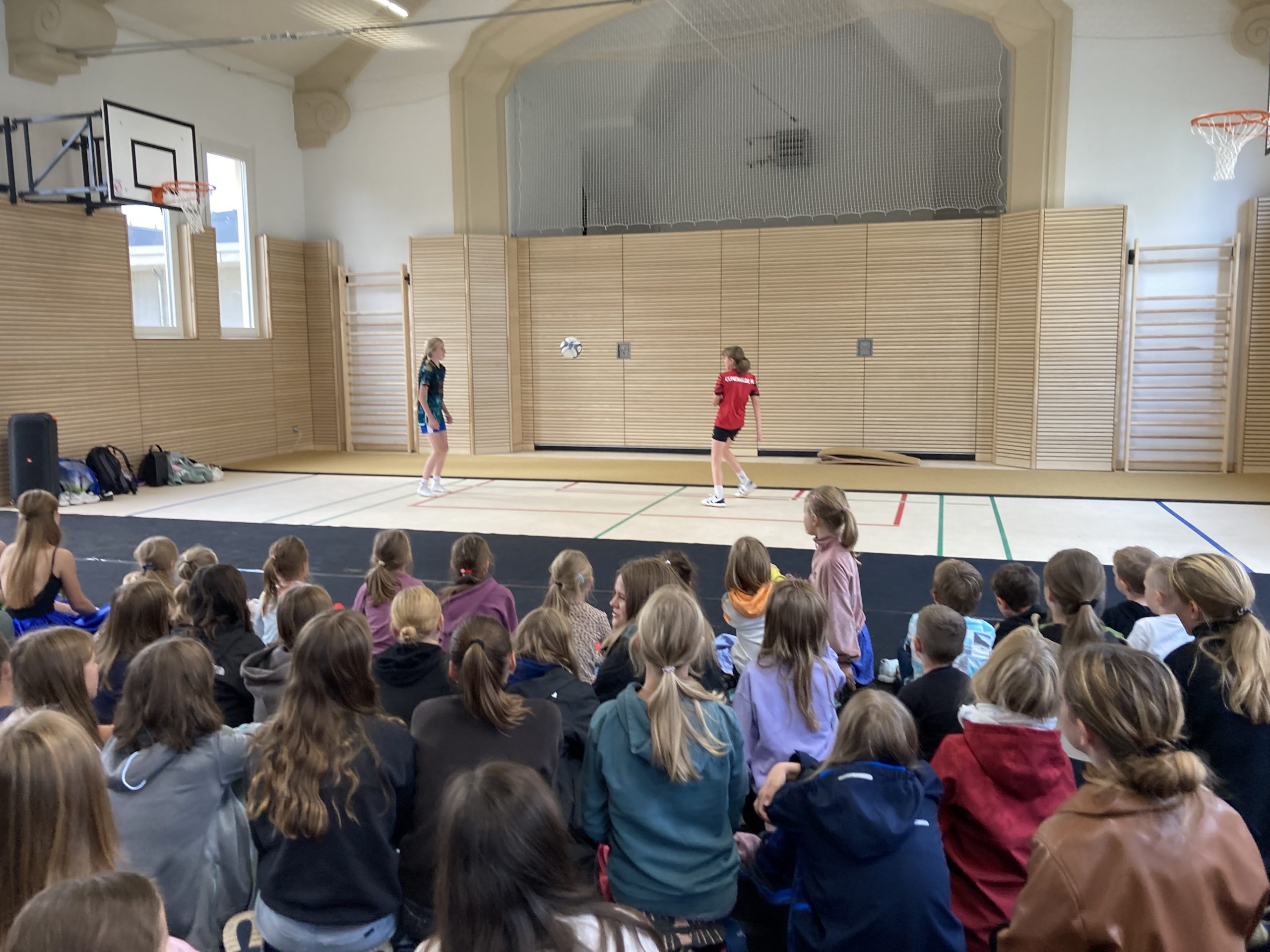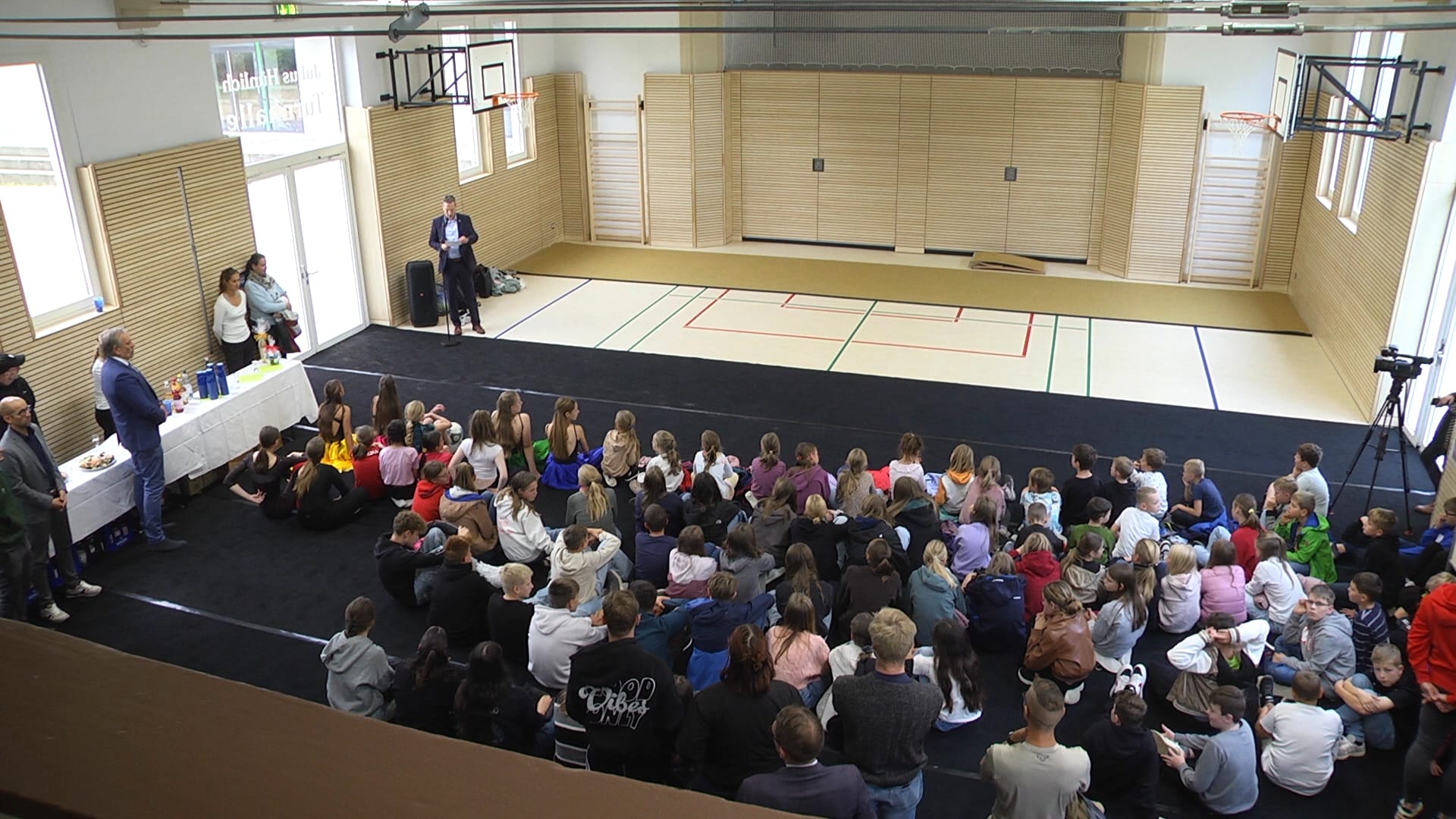 Das Eröffnungsprogramm wurde in großer Gesellschaft mit einem Empfang von Vertretern der beteiligten Baufirmen, der Stadtverwaltung, des Kultusministeriums, der Schulleitungen der drei Schulen sowie jeweils einer Schulklasse der drei Schulen des Schulzentrums gefeiert. Das sportliche Programm zur Eröffnung präsentierten Kantianerinnen mit einer Fußballjonglage, (Synchron)Turnküren und zwei sehr abwechslungsreichen tänzerischen Darbietungen. Der kräftige Applaus war eine eindeutige Rückmeldung für die Qualität. Vielen Dank für die Darbietungen der Sportlerinnen sowie Herrn Herfort für die würdige Einweihungsfeier in diesem Rahmen, die nicht nur wegen des von Herrn Besold ausgegebenen Eises allen in Erinnerung bleiben wird.